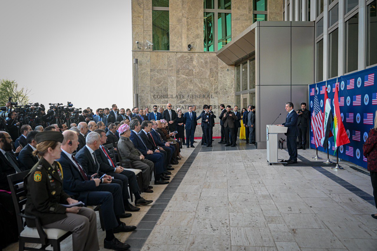 ئەمڕۆ چوارشەممە 12/3، لە ڕێورەسمێکی تایبەتدا، بە ئامادەبوونی سەرۆک مەسعود بارزانی، نێچیرڤان بارزانی، سەرۆکی هەرێمی کوردستان و مەسرور بارزانی، سەرۆکی حکومەتی هەرێمی کوردستان و مایکڵ ڕیگەس، جێگری وەزیری دەرەوەی ئەمەریکا، کۆمەڵگەی نوێی کونسوڵخانەی ئەمەریکا لە هەولێر کرایەوە.