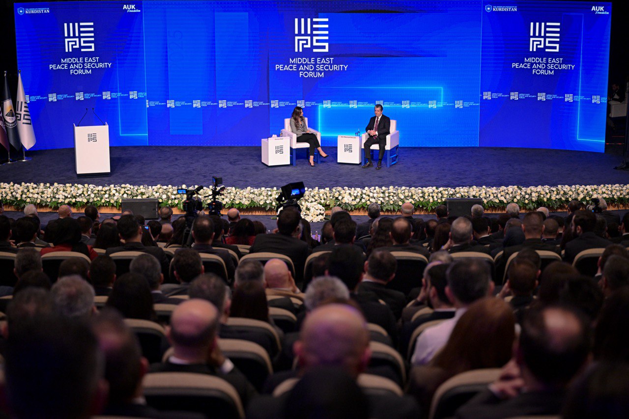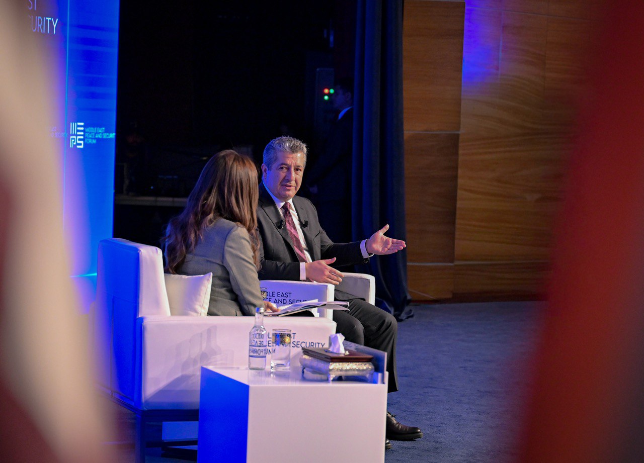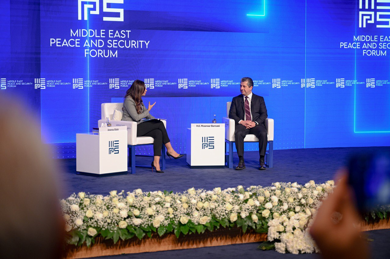ئەمڕۆ چوارشەممە 11/19، مەسرور بارزانی سەرۆكی حكومەتی هەرێمی كوردستان، لە دیدارێکی تایبەتدا لە چوارچێوەی كۆڕبەندی ئاشتی و ئاسایشی رۆژهەڵاتی ناوەڕاست (MEPS 2025)ی زانکۆی ئەمەریکی کوردستان لە دهۆک، وەڵامی پرسیارەكانی دایەوە ، پانێلەکە بە زمانی ئینگلیزی بوو کە لەلایەن پێشکەشکار ئامینە بەکر بەڕێوەبرا .