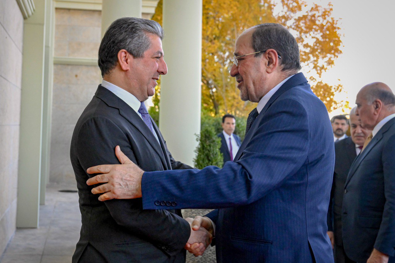 ئەمڕۆ شەممە 11/22، مەسرور بارزانی، سەرۆکی حکومەتی هەرێمی کوردستان، پێشوازی لە نووری مالیکی سەرۆکی هاوپەیمانیی دەوڵەتی یاسا کرد.