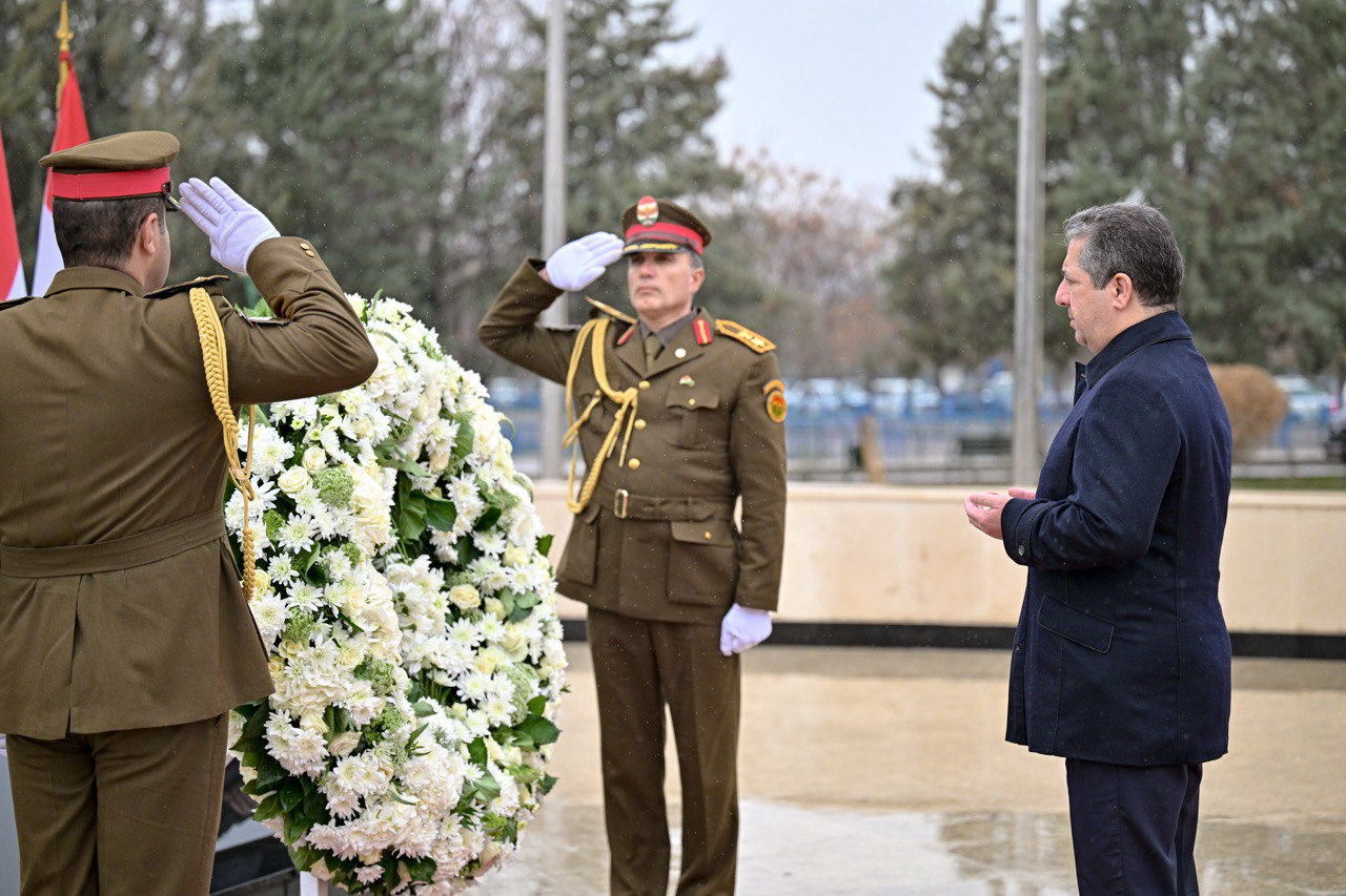 سەرۆکی حکومەت تاجەگوڵینەی لە بەردەم مۆنیۆمێنتی شەهیدانی یەکی شوبات دانا