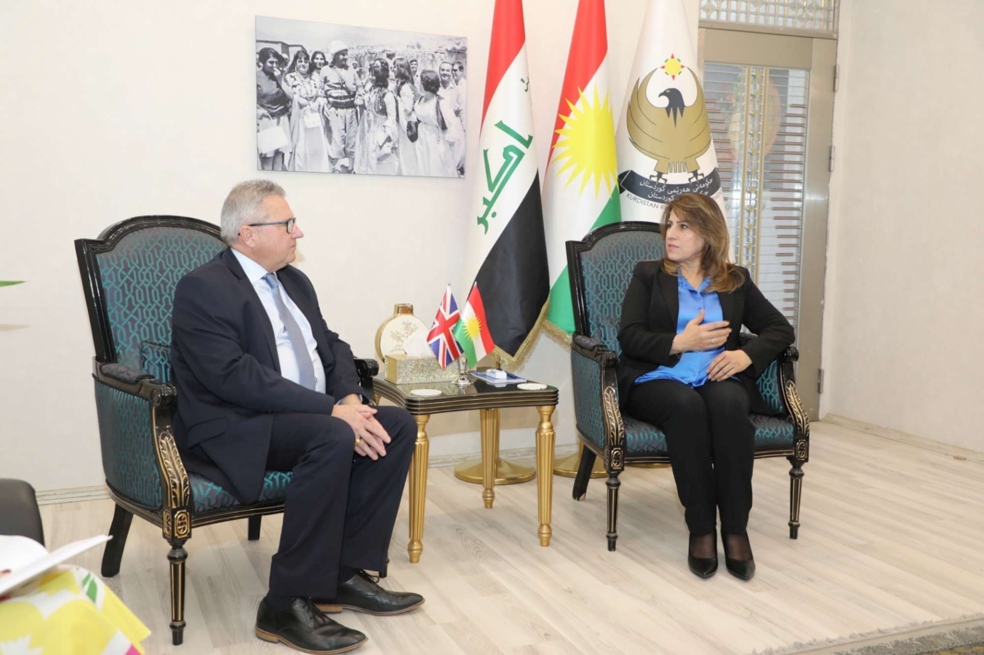 ئهمینداری گشتیی ئهنجومهنی باڵای خانمان و گهشهپێدان پێشوازی لە شاندێکی پەرلەمانی بەریتانیا کرد