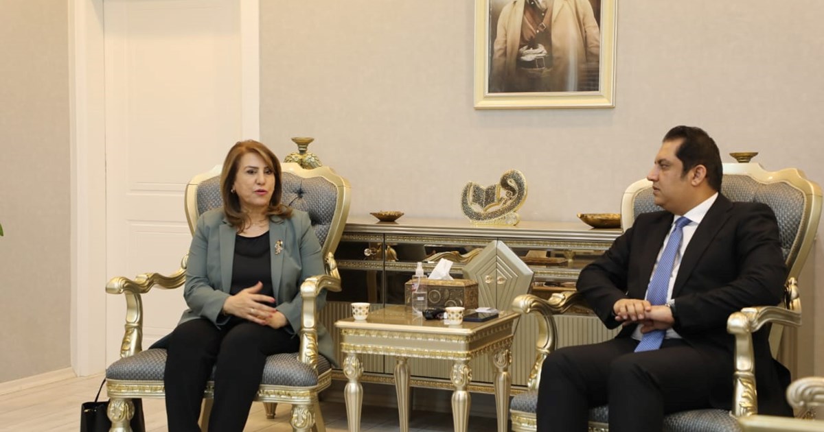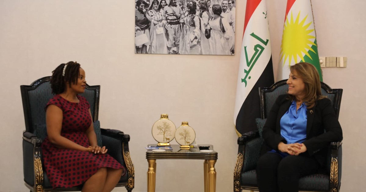 ئهمینداری گشتی ئهنجومهنی باڵای خانمان و گهشهپێدان لهگهڵ بهرپرسی دۆسیهی مافەکانی ئافرەت له ئۆفیسی مافی مرۆڤ له ئاژانسی UNAMI ی سەر بە نەتەوە یەكگرتووەكان و شاندی یاوهری کۆبووەوە