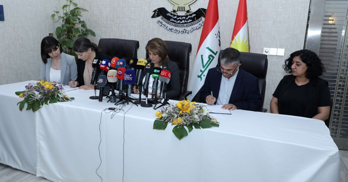 هەولێر، هەرێمی کوردستان، عێراق (GOV.KRD)- ئه‌مڕۆ پێنجشه‌ممه‌ ۲۳ی حوزه‌یرانی ۲۰۲۲، به ‌ئاماده‌بوونی د. خانزاد ئه‌حمه‌د ئه‌مینداری گشتی ئه‌نجومه‌نی باڵای خانمان و گه‌شه‌پێدان له‌ حكومه‌تی هه‌رێمی كوردستان، ئارام شاكرام به‌ڕێوه‌به‌ری ئۆفیسی هه‌رێمی كوردستانی ڕێكخراوی (women for women international ) ی نێوده‌وڵه‌تی  و سوزان لیشویس به‌ڕێوه‌به‌ری پرۆگرامی به‌هێزكردنی به‌شداری ئافره‌تان له‌ پرۆسه‌ی چاكسازی و ئاشتی له‌ عێراق، یاداشتنامه‌ی له‌یه‌كگه‌یشتن له‌ نێوان ئه‌نجومه‌نی باڵای خانمان و گه‌شه‌پێدان له‌ حكومه‌تی هه‌رێمی كوردستان و هه‌ردوو ڕێكخراوی  (women for women international) و  (GIZ)ی ئه‌ڵمانی  واژۆ كرا، به‌ مه‌به‌ستی هه‌ماهه‌نگی و كارو چالاكیی هاوبه‌ش له‌ پڕۆژه‌ی "به‌هێزكردنی به‌شداری خانمان له‌ پرۆسه‌ی چاكسازیی و ئاشتیدا" .