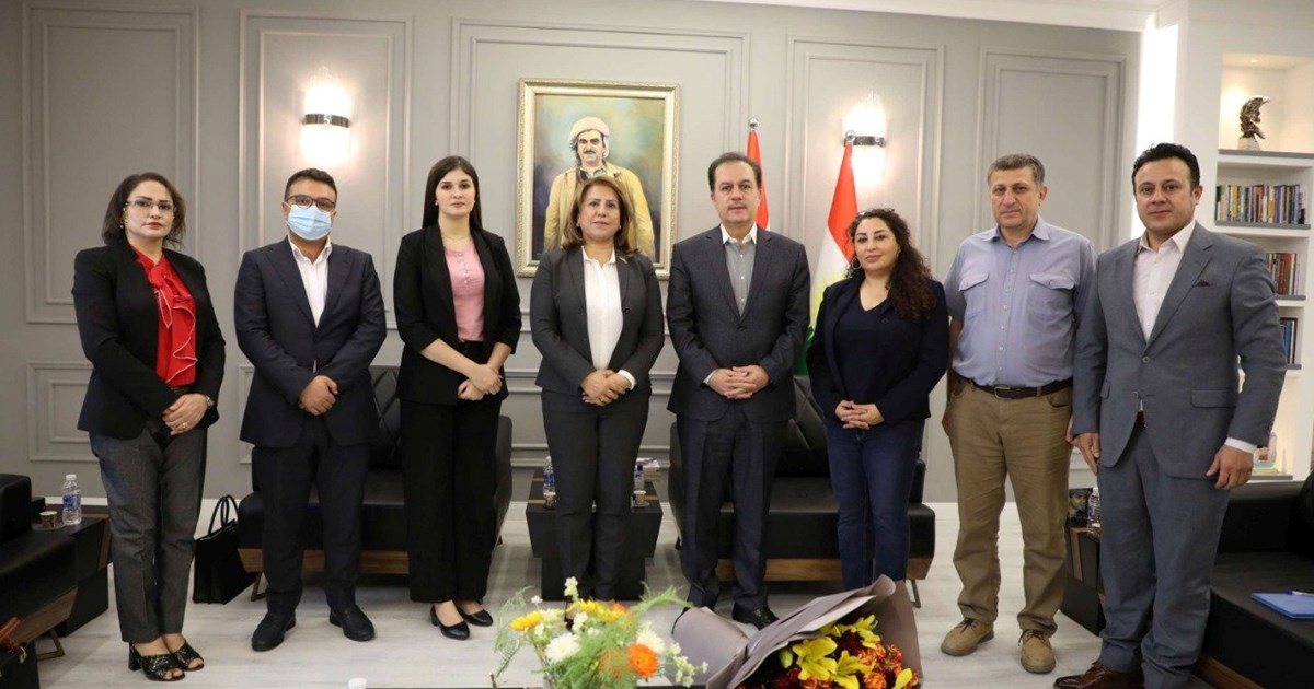 هەولێر، هەرێمی کوردستان، عێراق (GOV.KRD)- د.خانزاد ئەحمەد ئەمینداری گشتی ئەنجومەنی باڵای خانمان و گەشەپێدان لە حكومەتی هەرێمی كوردستان بە یاوەریی شاندێكی ئەنجومەن، سەردانی وەزارەتی ڕۆشنبیریی و لاوانی كرد و لەلایەن د. سالار عوسمان بریكاری وەزارەت پێشوازیان لێكرا.