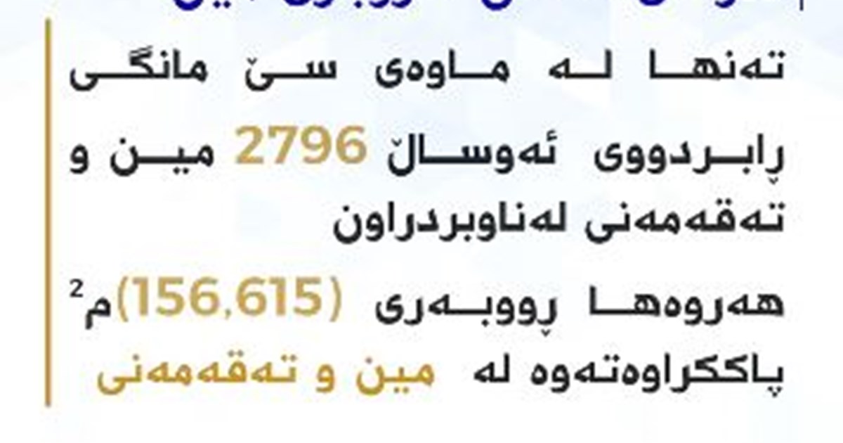 بەڕێوەبەرایەتی گشتیی کاروباری مین له سلێمانی، له ڕێگهی ڕێکخراوی نێودەوڵەتی MAG دوو زەوی مینڕێژکراوی پاككردهوه و دواتر ڕادەستی خاوەنەکانیان کرانهوه.