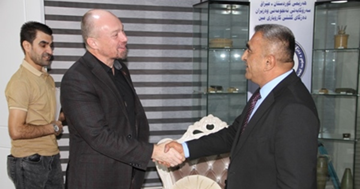 هەولێر، هەرێمی كوردستان، (GOV.KRD)- ڕۆژی پێنجشەممە، ١٣ی تشرینی یەکەمی ٢٠٢٢، جەبار مستەفا، سەرۆكی دەزگای گشتیی كاروباری مین، بەئامادەبوونی عەلی میران، بەڕێوبەری گشتیی کاروباری هونەری، پێشوازیان لە پێرلۆد هامەر سەرۆکی بەرنامەی فەرمانگەی نەتەوە یەكگرتووەكان بۆ كاروباری مین (UNMAS) لە عێراق كرد.