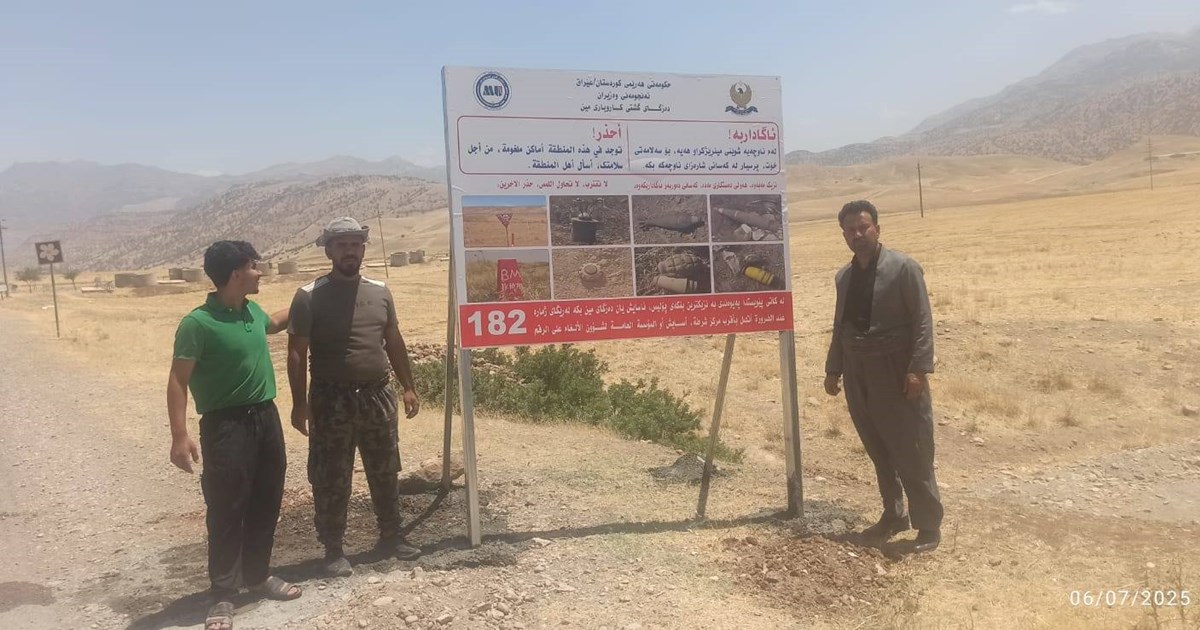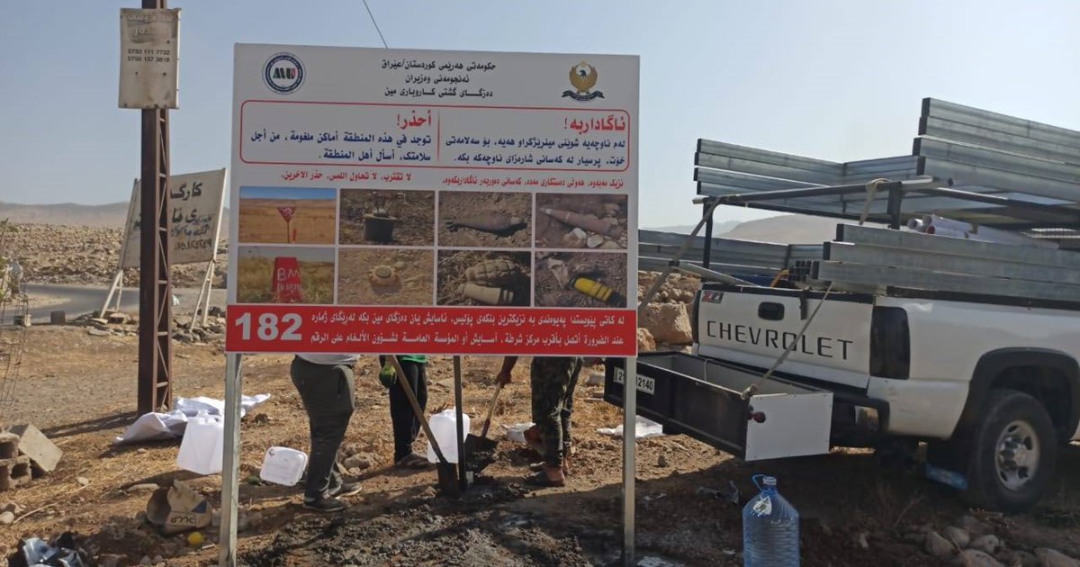 دەزگای مین ژمارەیەک تابلۆی هۆشیارکردنەوە لە سەر ڕێگە سەرەکییەکانی ئیدارەی سەربەخۆی ڕانیە دادەنێت