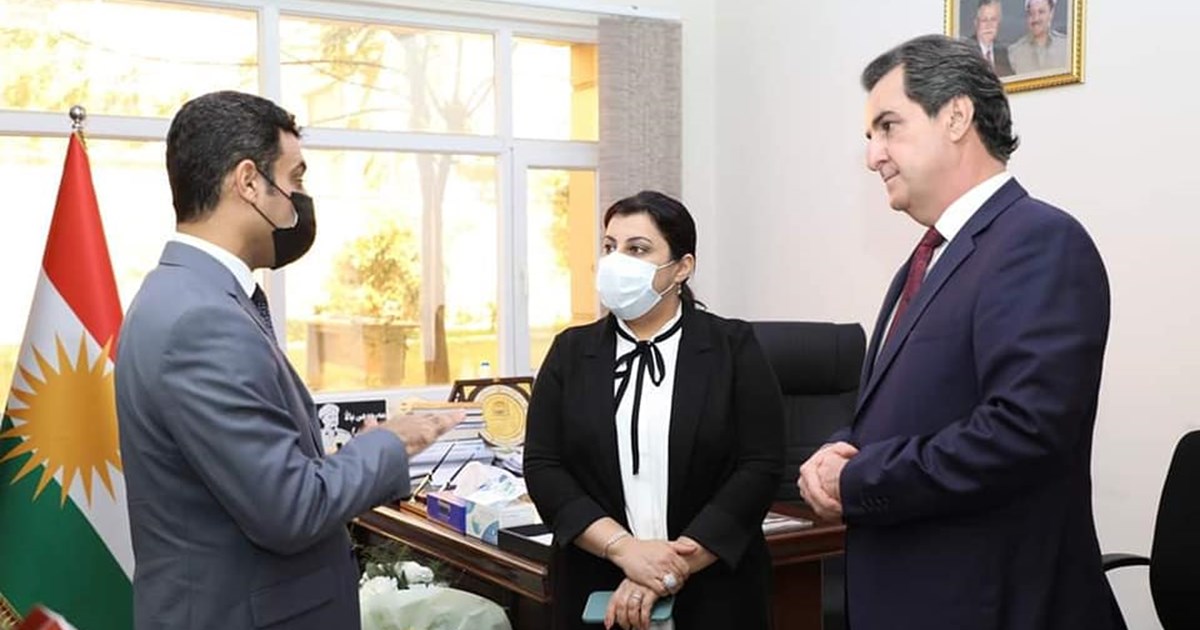 Erbil, Kurdistan Region, Iraq (GOV.KRD) – The Kurdistan Regional Government’s Minister of Agriculture and Water Resources, Begard Talabani, on Monday November 23, 2020 congratulated the new Deputy Ministers for Trade and Industry, Ali Othman and Sarwar Hawari, who were appointed to respectively serve within the departments of Industry and Trade.