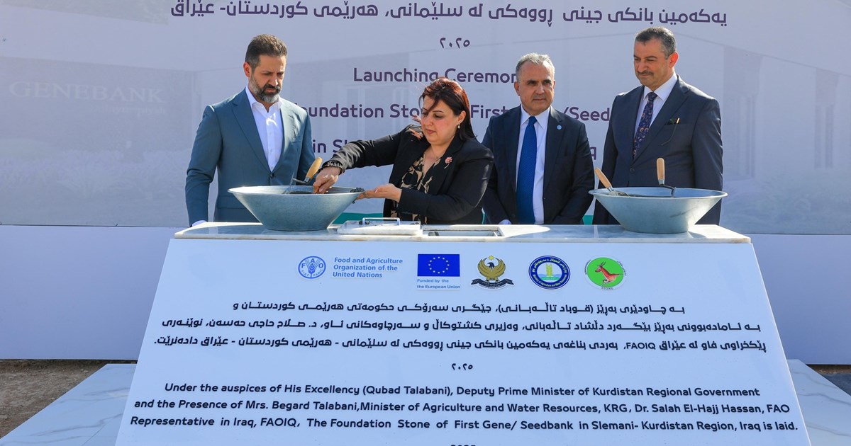 ڕۆژی سێشەممە، ٨ی تەمموزی ٢٠٢٥، بۆ یەکەمجار بەردی بناغەی پڕۆژەیەکی گەورەی ستراتیژیی بواری کشتوکاڵی (جین بانک ) لە سلێمانی دانرا.