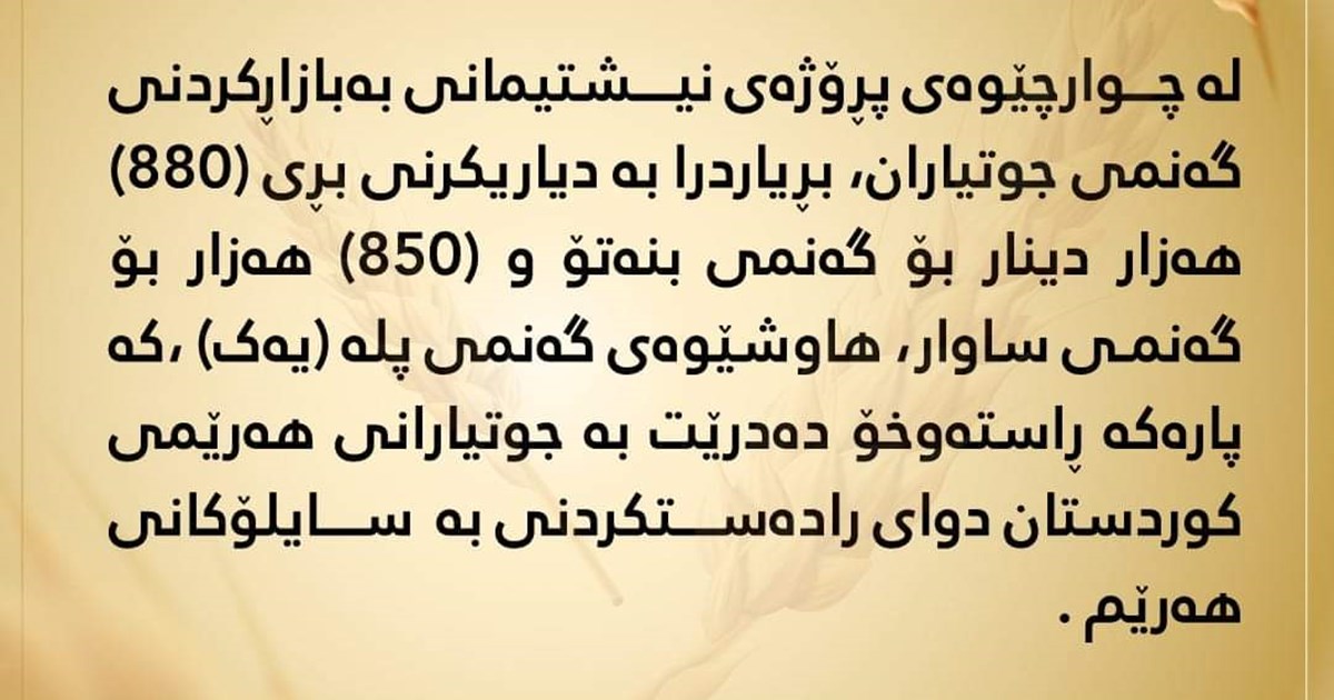 دووەمین ڕاگەیەنراوی تایبەت بە کڕینەوەی گەنمی جوتیارانی هەرێمی کوردستان