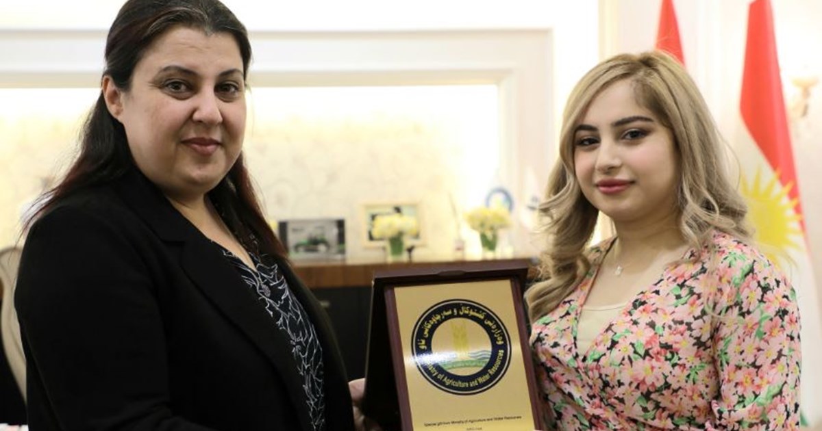 وەزیری کشتوکاڵ و سەرچاوەکانی ئاو بە ئامادەبوونی راوێژکار و بەڕێوەبەری راگەیاندن و بەڕێوەبەری پەیوەندیەکان و خانەوادەی ناوبراو لە دیوانی وەزارەت لە پێشوازیەکدا خەڵاتی ڕێزلێنان و هاندانی بەخشی بە خوێندکار (سۆما نیهاد) براوەی یەکەمی پێشبڕکێی خەڵاتی داهێنانی زانستی روانگە.