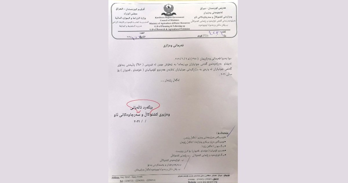 بڕیاردرا بە لێخۆشبوون لە لێبڕینی (%2) ی پاڵپشتی بنەتۆی گەنمی جوتیاران