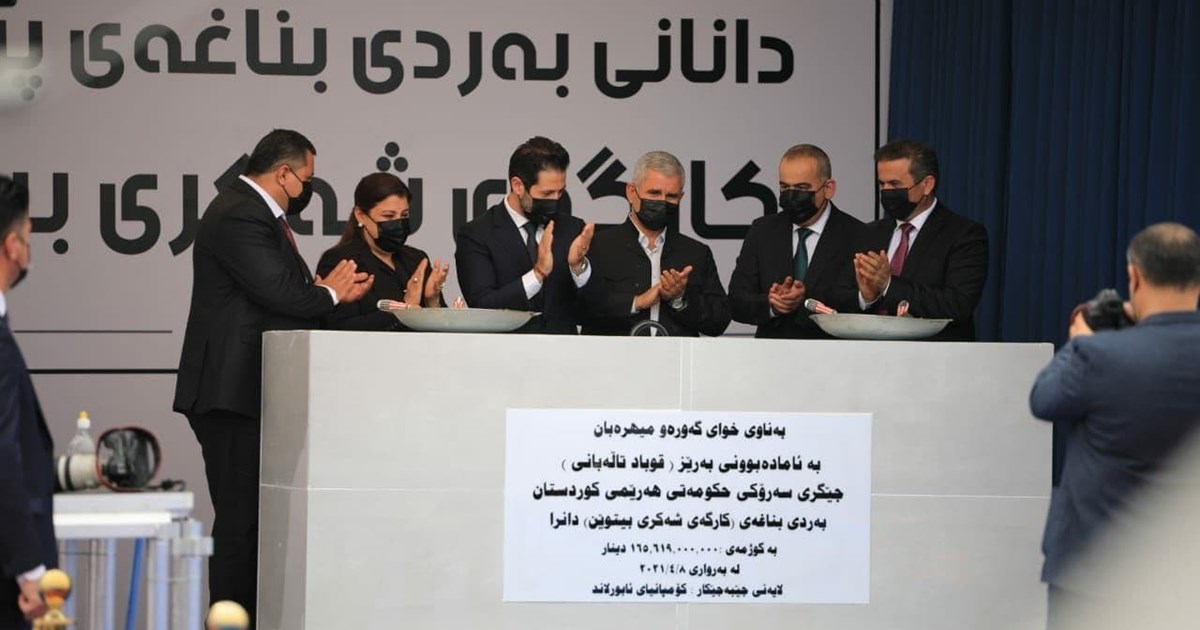 هەولێر، هەرێمی کوردستان، عێراق (GOV.KRD)- ئهمڕۆ ٢٠٢١/٤/٨ بە ئامادەبوونی قوباد تاڵەبانی جێگری سەرۆکی حکومەت و بێگەرد تاڵەبانی وەزیری کشتوکاڵ و سەرچاوەکانی ئاو و وەزیری بازرگانی و سەرۆکی دەستەی وەبەرهێنان و ژمارەیەک لە پەرلەمانتاران و کەسایەتی حکومی لە ئیدارەی راپەڕین، لەمەڕاسیمێکی شایستەدا بەردی بناغەی کارگەی شەکری چەوەندەری بیتوێن دانرا، وەکو یەکێک لە پرۆژە هەرە گرنگ و ستراتیژیەکانی وەزارەتی کشتوکاڵ و سەرچاوەکانی ئاو، بە هاوبەشی لەگەڵ کۆمپانیای ئابورلاند.