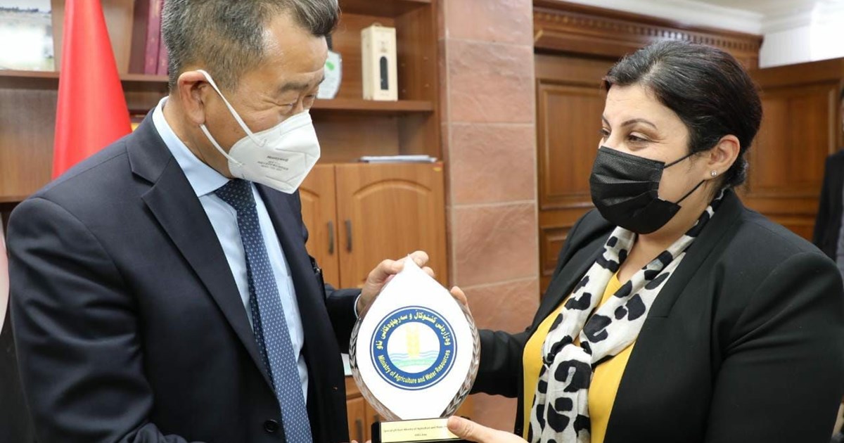 بێگەرد تاڵەبانی وەزیری کشتوکاڵ و سەرچاوەکانی ئاو پێشوازی لە کۆنسوڵی گشتی کۆماری میلی چین دەکات