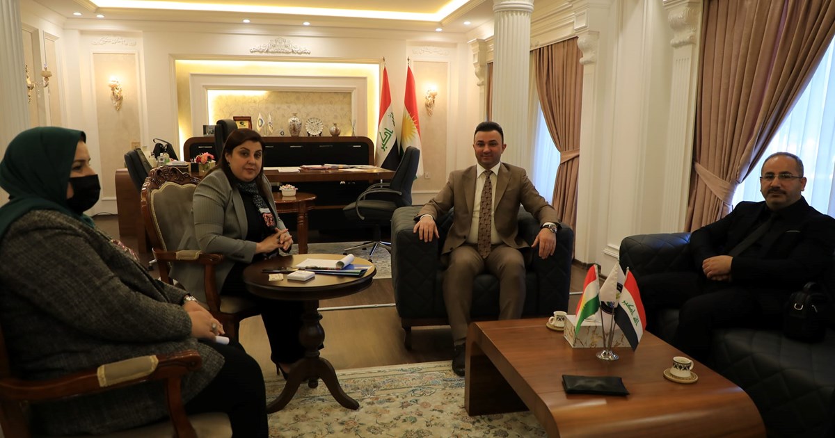 هەولێر، هەرێمی کوردستان، عێراق (GOV.KRD)- بێگەرد تاڵەبانی، بە ئامادەبوونی بەڕێوەبەری گشتی زەوی و زار، پێشوازی کرد لە خورشيد عبداللطيف مزوری، خاوەن و بەڕێوەبەری جێبەجێکارى گروپی کۆمپانیاکانی تانج و ستافێکی یاوەری.