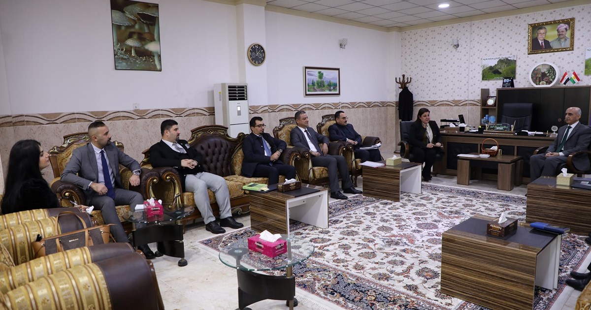هەولێر، هەرێمی کوردستان، عێراق (GOV.KRD)- ڕۆژی یەکشەمە ،2022/1/9 بێگەرد تاڵەبانی، وەزیری کشتوکاڵ و سەرچاوەکانی ئاو بەیاوەریی ستافێکی باڵای وەزارەت، سەردانی دەستەی پاراستن و چاککردنی ژینگەی هەرێمی کوردستانی کرد و لەلایەن عەبدولڕەحمان سدیق، سەرۆکی دەستەکە پێشوازیان لێکرا.