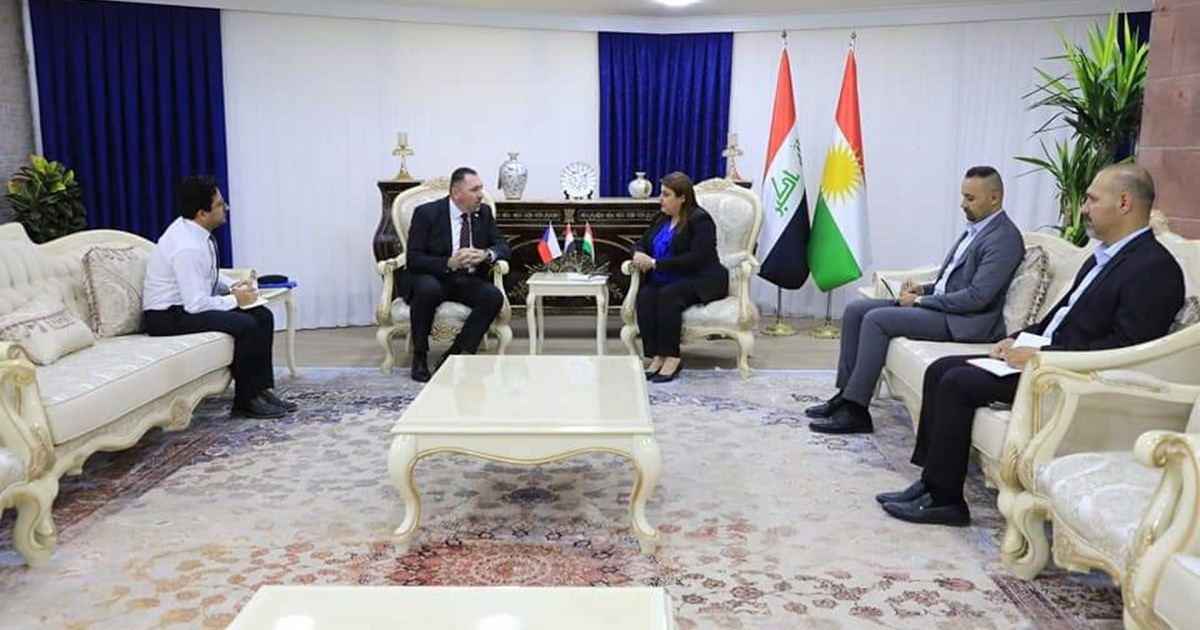 هەولێر، هەرێمی کوردستان، عێراق (GOV.KRD)- ڕۆژی سێشەممە ٢٠٢٢/٧/٢٦ بێگەرد تاڵەبانی وەزیری کشتوکاڵ و سەرچاوەکانی ئاو پێشوازی لە کونسوڵی کۆماری چیک کارێڵ کۆرتانێک کرد.