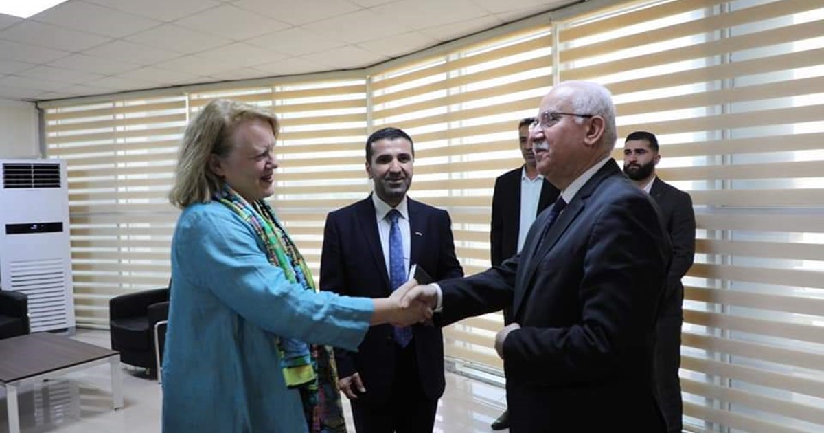هەولێر، هەرێمی کوردستان، عێراق (GOV.KRD)- ڕۆژی سێشەممە ، ٣١ ی ئایاری ٢٠٢٢، کەریم سلێمان بریکاری وەزارەتی کشتوکاڵ و سەرچاوەکانی ئاو بە ئامادەبوونی ڕاوێژکار و ب.گشی پلاندانان و ب. گشتی سەرچاوەکانی ئاو پێشوازیکرد لە شاندێکی باڵای حکومەتی بەریتانی، کە پێکهاتبوون لە جانێت رۆگان باڵیۆزی ژینگە و نوێنەری حکومەتی بەریتانیا لە ڕۆژهەڵاتی ناوەراست و دەیڤد هەنت کونسوڵی گشتی و بەرپرسی تیمی سیاسی بەریتانیا لە هەرێمی کوردستان .