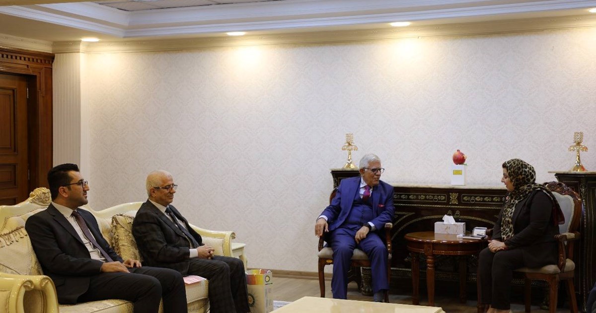 وهزيرى كشتوكاڵ و سهرچاوهكانى ئاو پێشوازى لە سەرۆکی دەستەی ئەمینداری زانکۆ و پەیمانگە و قوتابخانەکانی جیهان كرد
