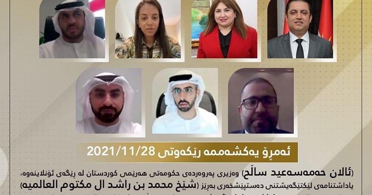 ئالان حەمه سهعيد ساڵح وهزيری پهروهردهى حکومەتی هەرێمی کوردستان له ڕێگهى ئۆنڵاينهوه ياداشتى لێكتێگهيشتنی بۆ پڕۆژهى دهوڵهتی ئيمارات واژۆ كرد.