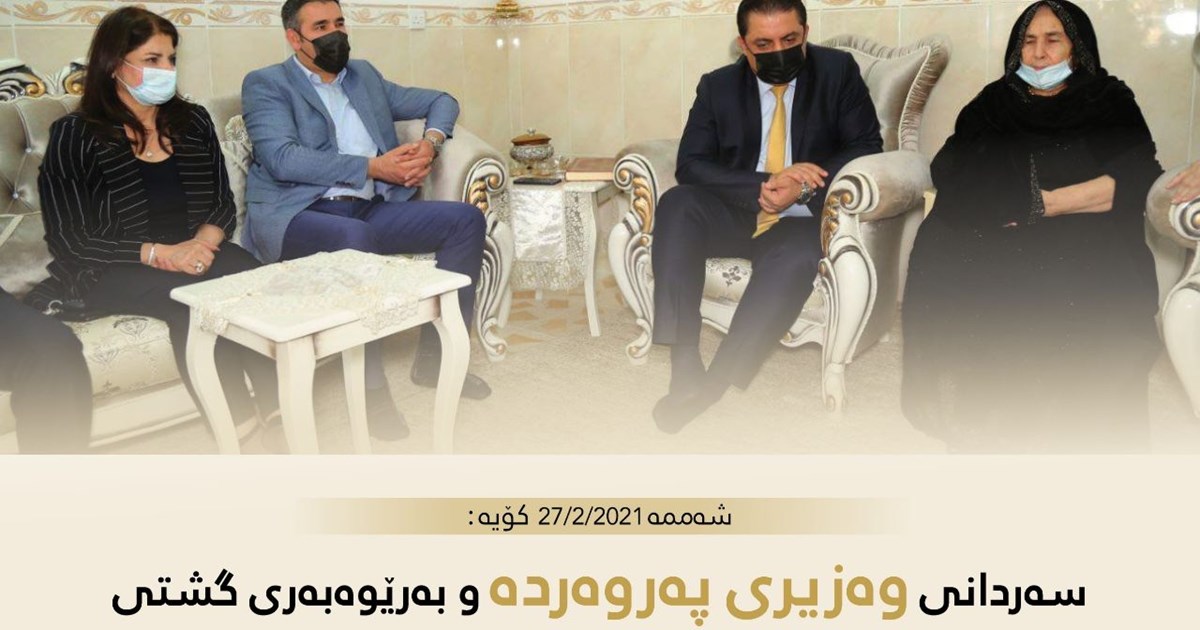 هەولێر، هەرێمی کوردستان، عێراق (GOV.KRD)- ئەمڕۆ شەممە 2021/2/27 بەنوێنەرایەتی سەرۆکی حکومەت ئاڵان حمەسەعید سالح وەزیری پەروەردە لەگەڵ بەڕێوەبەری گشتی پەروەردەی هەولێر و بەڕێوەبەری پەروەردەی کۆیە، سەردانی هەریەک لە خانەوادەی کۆچکردوو (نەجمە محمد) و دایکی مامۆستا (شەهێن عوسمان) بەرێوەبەری پەروەردەی کۆیە بەهۆی ناجێگیری تەندروستی، وەزیری پەروەردە بەسەری کردنەوە.