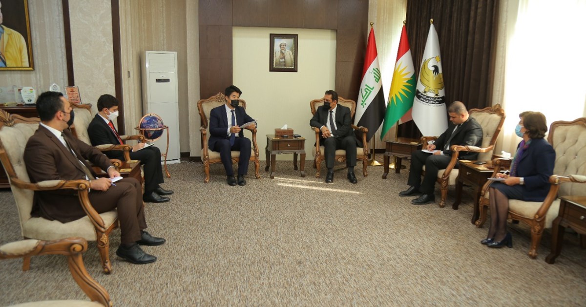 هەولێر، هەرێمی کوردستان، عێراق (GOV.KRD)- ئهمڕۆ پێنجشەممە ٢٨ی١٠ی٢٠٢١، "ئالان حەمەسەعید ساڵح"وهزیری پهروهردهی حكومهتی ههرێمی كوردستان، پێشوازی له (جۆ هیون گیوو) سەرۆکی نوێی ئاژانسی کۆیکاى كۆرى کرد.