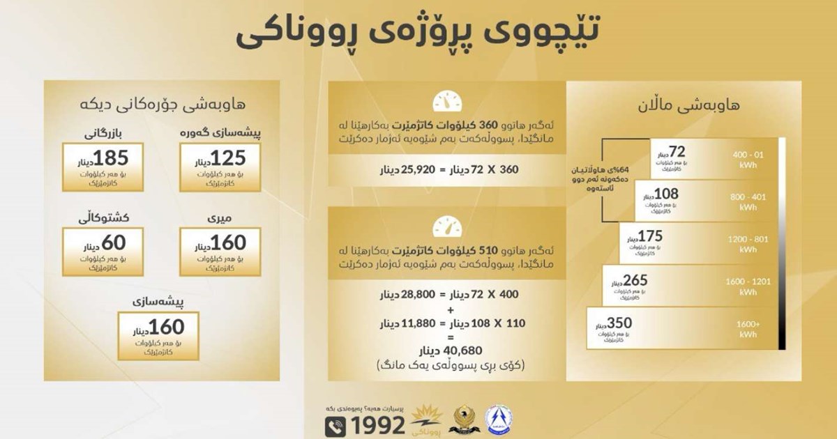 پرۆژەی ڕووناکيی كارهباى 24 كاتژمێرى بە فەرمی نرخەکانی کارەبا ڕادەگەيهنێت