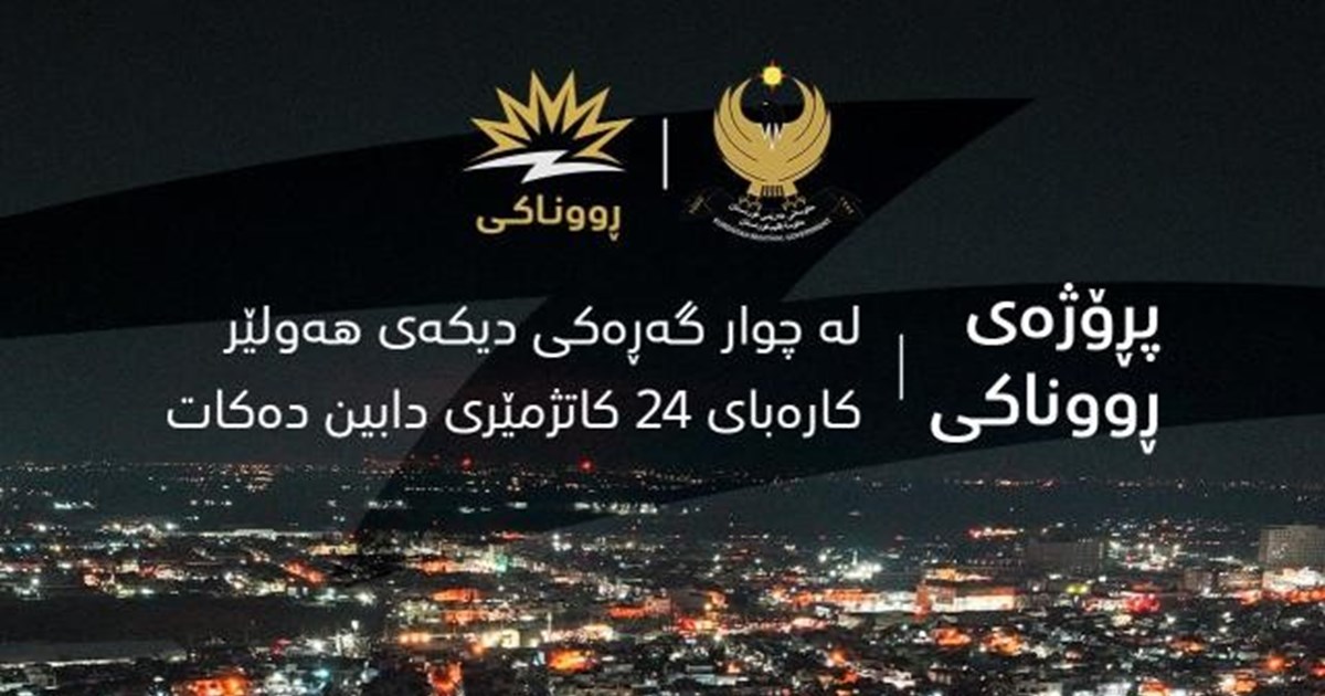 پرۆژەی ڕووناکی لە چالاکیيەکانی بەردەوامە و بەمزووانە کارەبای ٢٤ کاتژمێری بۆ کۆمەلێک گەڕەکی دیکە لە هەر سێ پارێزگهی هەرێمی کوردستان دابین دەکات.