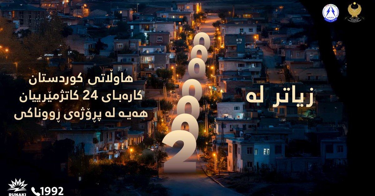 هەولێر، هەرێمی کوردستان (GOV.KRD) — وەزارەتی کارەبای حکومەتی هەرێمی کوردستان ئەمڕۆ خۆشحاڵە بە ڕاگەیاندنی گەیشتنی کارەبای 24 کاتژمێری بۆ زیاتر لە 2 ملیۆن هاوڵاتی، کە دەکاتە نزیکەی 30%ـی دانیشتووانی هەرێمی کوردستان لە چوارچێوەی پڕۆژەی ڕووناکی.