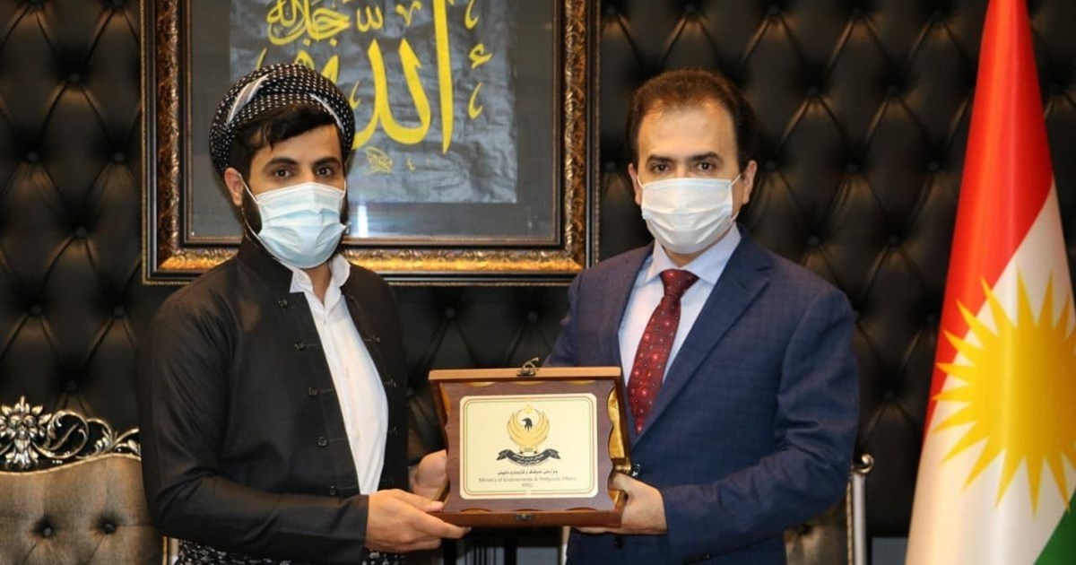 وەزیری ئەوقاف و کاروباری ئایینی حكومەتی هەرێمی كوردستان پێشوازی لە قورئانخوێن مامۆستا رەعد کوردی كرد