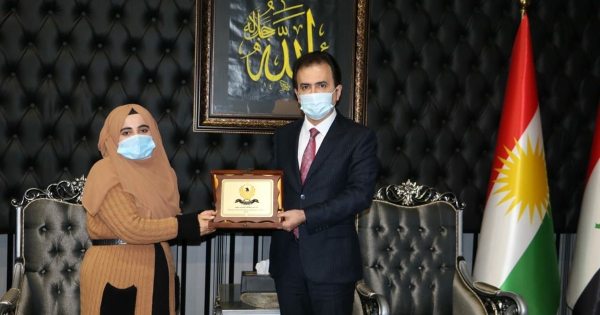 ئەمرۆ دووشەممە 2021/2/22 د. پشتیوان سادق وەزیری ئەوقاف وکاروباری ئایینی پێشوازی لەخاتوو نەدا محمد کرد کەتوانی لەماوەیەکی دیاری کراودا ھەموو قورئانی پیرۆز لەبەر بکات.