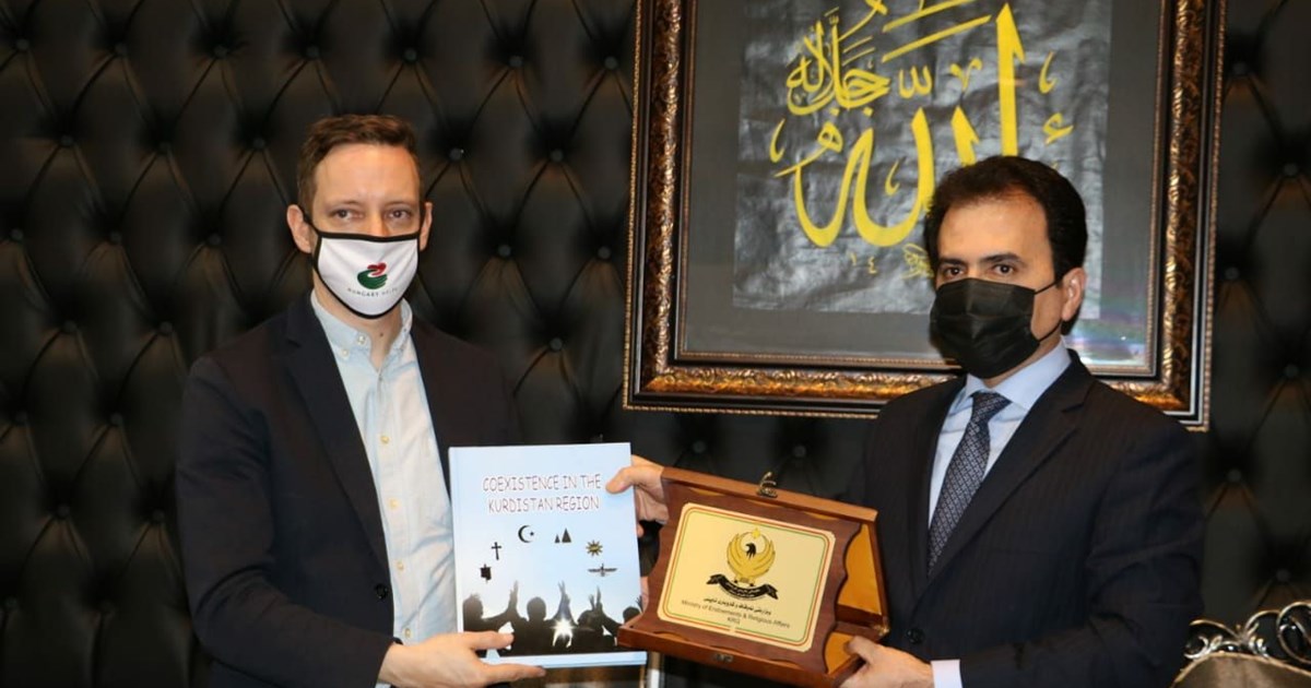 وەزیری ئەوقاف وکاروباری ئایینی پێشوازی لە وەزیری هاریکاری مەسیحیە چەوسێنراوەکان وپرۆگرامی هاوکاری هەنگاریا لەئۆفیسی سەرۆک وەزیران، کونسولی گشتی هەنگاریا لە هەولێر دەکات.