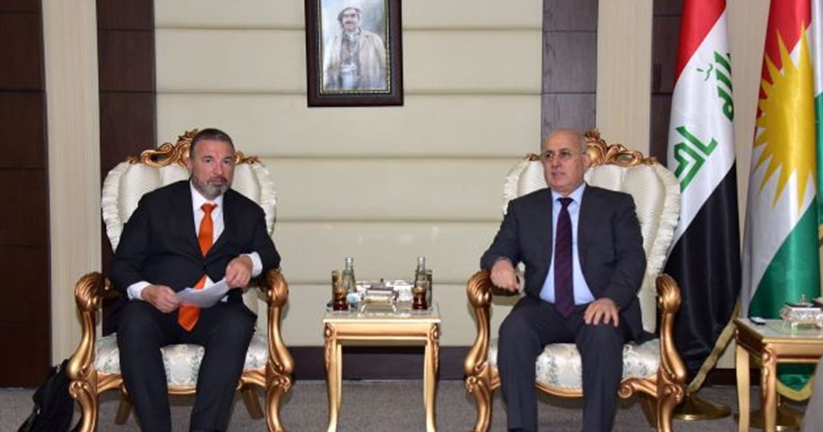 ئاوات جەناب نووری، وەزیری دارایی و ئابووری لە دیوانی وەزارەت پێشوازی کرد لە وەفدێکی باڵای کونسوڵخانەی ئەمریکا لە هەولێر، کە پێکهاتبوون لە زەهرا بێل کونسوڵی گشتیی ئەمریکا لە هەولێر بە وەکالەت.