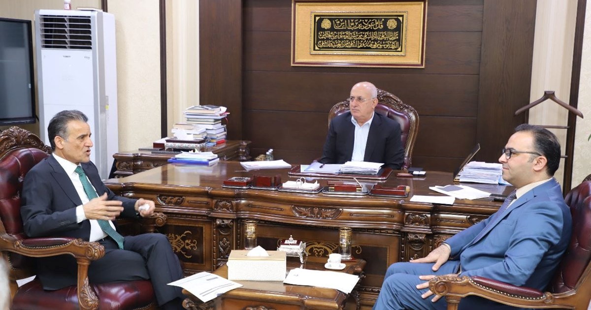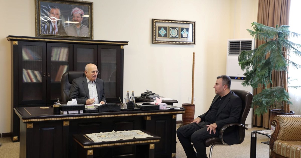 ئاوات جەناب نووری وەزیری دارایی و ئابووری لە دیوانی وەزارەت، پێشوازی لە دکتۆر ئارام محمد قادر وەزیری خوێندنی باڵاو توێژینەوەی زانستی کرد.