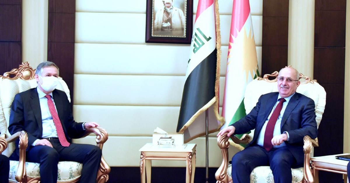 ئەمرۆ سێشەممە 2021/2/9 ئاوات جەناب نوری وەزیری دارایی و ئابوری پێشوازی لە جەیمس ثورنتون كونسوڵی گشتی بەریتانیا و شاندی یاوەری كرد.