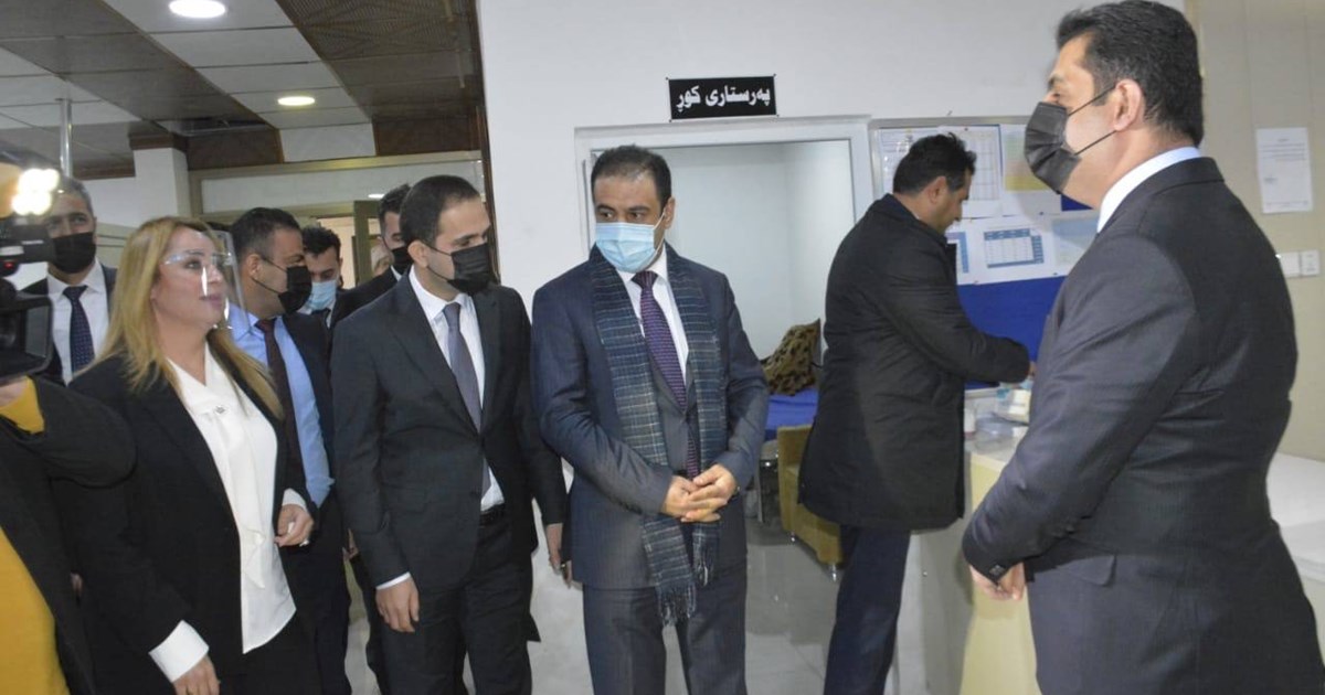 ڕۆژی سێشەممە ٢٠٢١/٤/٢٣ د.سامان بەرزنجی، وەزیری تەندروستی و د.دلۆڤان محەمەد، بەڕێوەبەری گشتی تەندروستی هەولێر سەنتەری کۆڕۆنایان لە نەخۆشخانەی فریاکەوتنی ناوەندی هەولێر بەسەرکردەوە