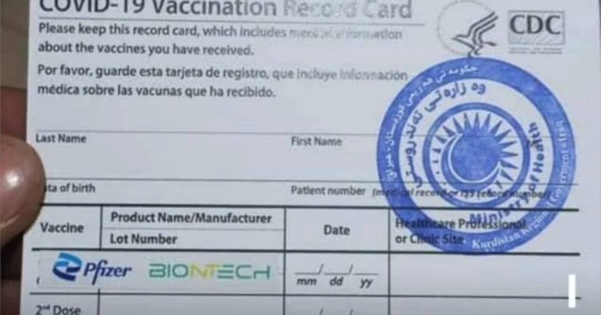 یەکەم: هیچ فۆرم و مۆرێکی تەندروستی هەرێم لەسەر ڤاکسینەکانی ڤایزەر بەکار نایەت، چونکە ڕاستەوخۆ ڤاکسینەکە بۆ هەرێمی کوردستان دابین نەکراوە، بەڵکو تەنها لە ڕێگەی وەزارەتی تەندروستی عێراقی فیدڕاڵەوەیە، بۆیە ئەو کارت و مۆر و فۆڕمە هیچ سەرچاوەیەکی ڕاستی و دروستی نییە.