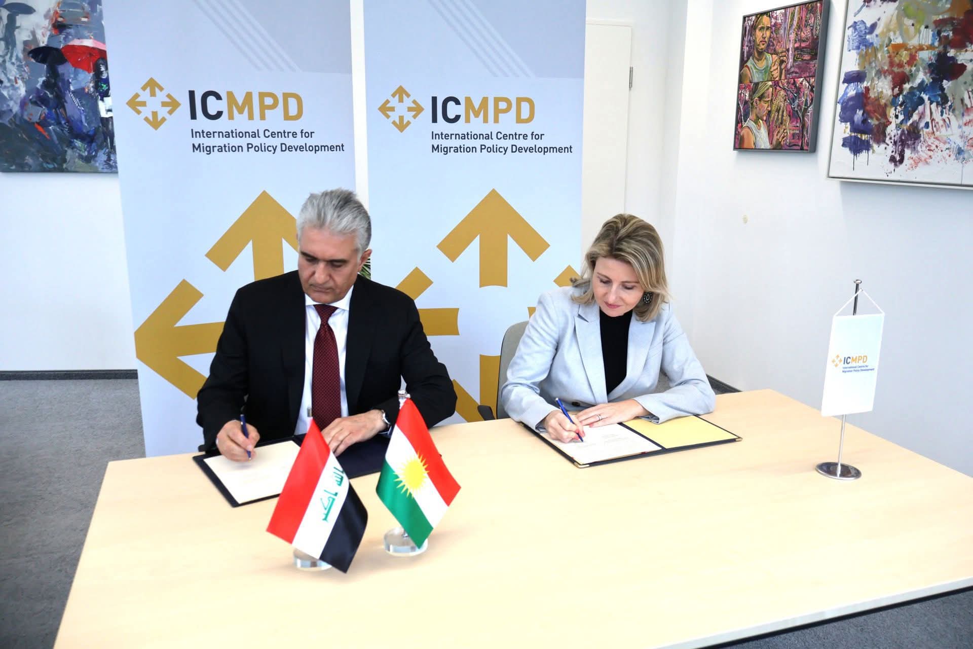 وەزیری ناوخۆی کوردستان و سوزان ڕاب، بەرپرسی ڕێکخراوی ICMPD واژۆی ڕێکەوتنەکەیان کرد، ئامانج لێی بەهێزکردنی هەماهەنگی نێوان هەردوولایە لە بوارەکانی ئیدارەکردنی کۆچ، تێکەڵبوونەوە، بەرزکردنەوەی تواناکان.