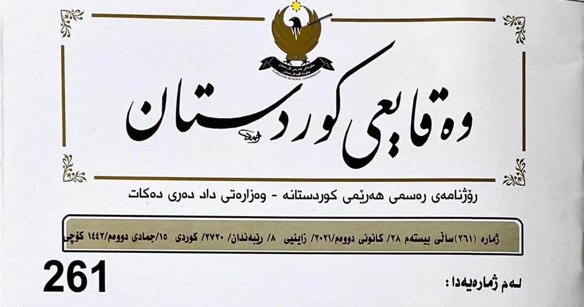 وەزارەتی داد ژمارەیەکی نوێی رۆژنامەی فەرمی "وەقایعی کوردستانی" بڵاوکردەوە