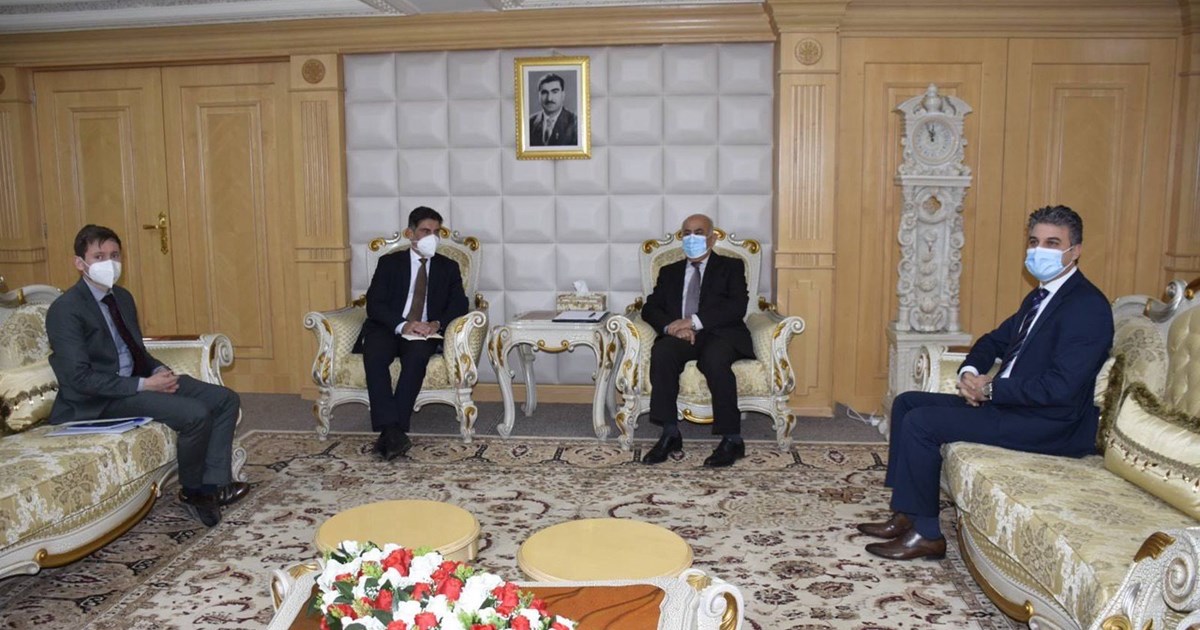 هەولێر، هەرێمی کوردستان، عێراق (GOV.KRD)- ئەمڕۆ دووشەممە ٢٠٢١/٣/١٥ وەزیری دادی حكومەتی ھەرێمی كوردستان، فرسەت ئەحمەد، لە دیوانی وەزارەتی داد، پێشوازی لە قۆنسۆڵی گشتى ئەڵمانياى فيدراڵ لە ھەرێمی كوردستان، كليمينس سيمينتر و رێكخەرى قۆنسۆڵگەرى ئەڵمانیا، ئەدريان رايزر كرد .
