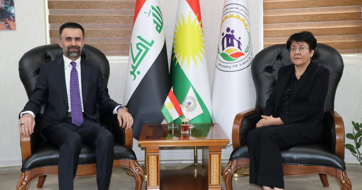 وەزیری کار و کاروباری کۆمەڵایەتی پێشوازی لە بەرێوەبەری گشتی لە نوێنەرایەتیی حکوومەتی ھەرێم کرد