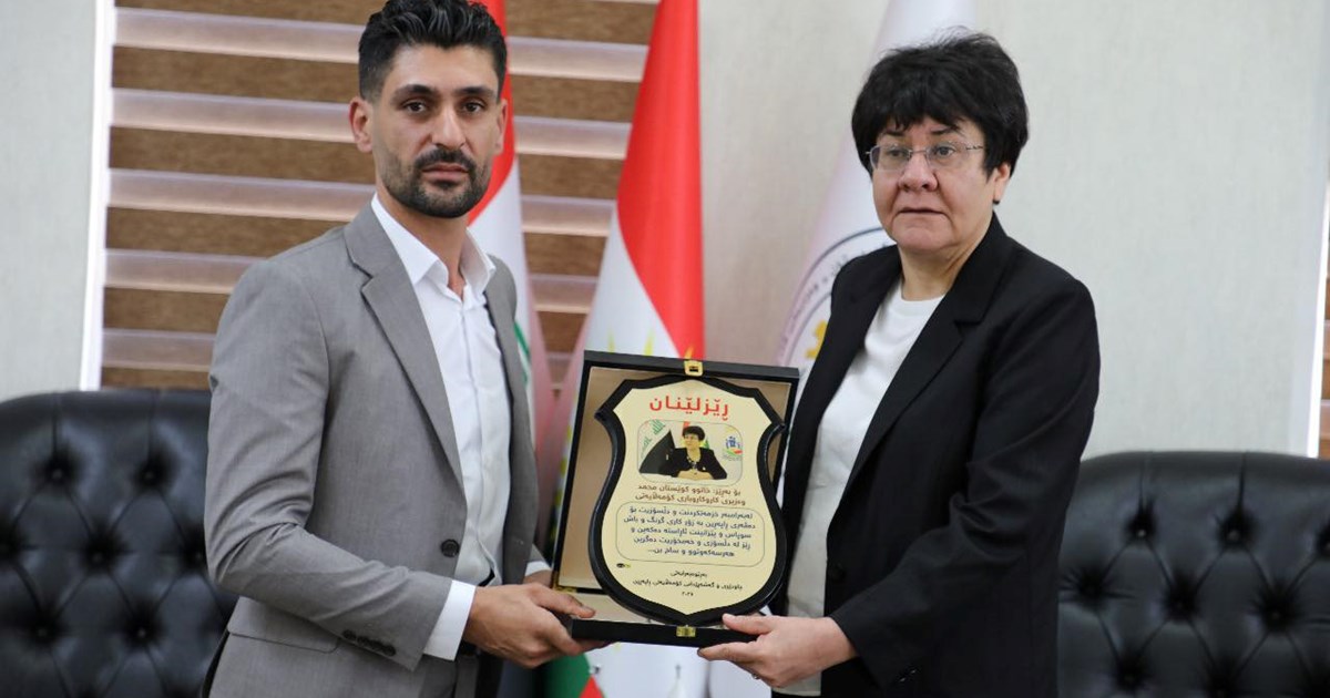لە کۆتاییدا شاندهكه قەڵغانی ڕێز و سوپاسیان پێشکەش بە وەزیری کار و کاروباری کۆمەڵایەتی کرد.