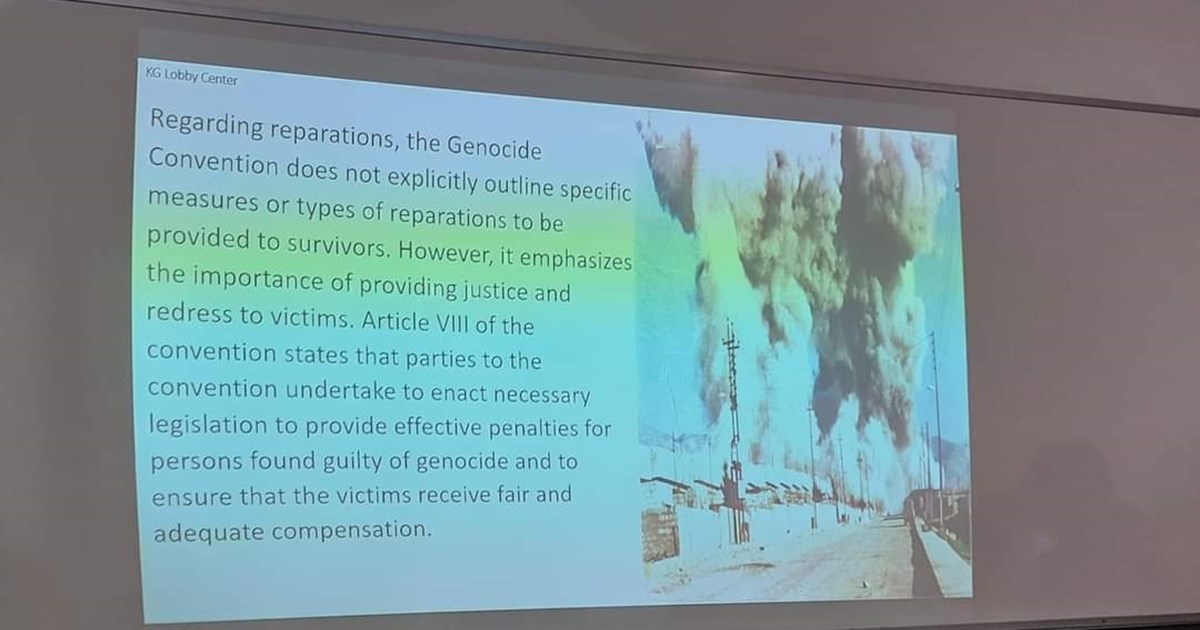 لە کۆنفرانسەکەدا گفتوگۆ کرا لەبارەی کەیسەکانی جینۆسایدی کورد لە کوردستانی عێراق بە هەبوونی سەرجەم خەسڵەتەکانی تاوانی جینۆساید، پاڵپشت بە ڕێککەوتننامە نێودەوڵەتییەکانی بواری جینۆساید و مافی مرۆڤ. کۆنفرانسەکەش لە ڕۆژانی داهاتوودا بەردەوام دەبێت.
