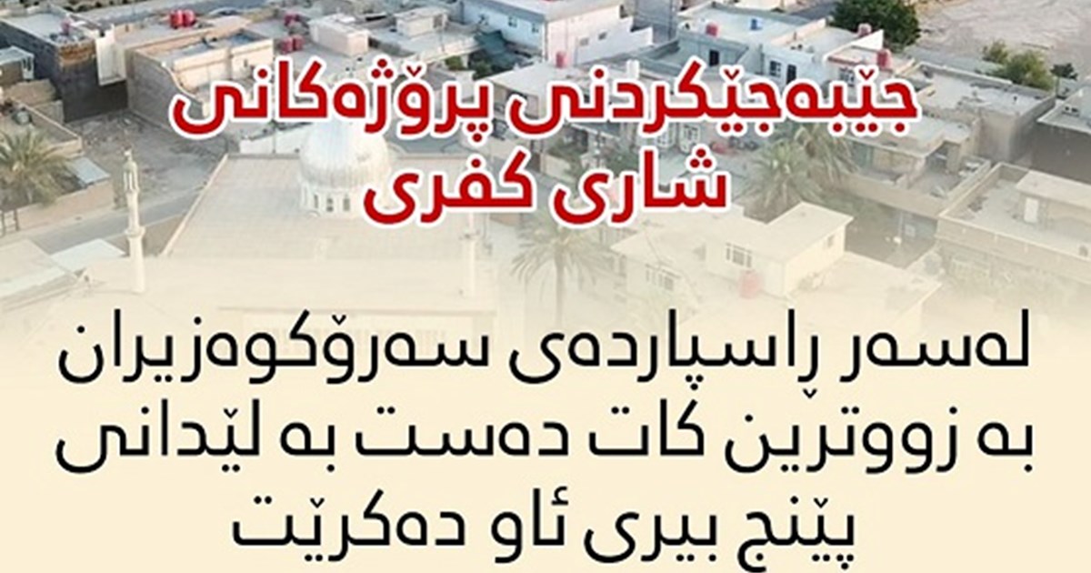 لهسهر ڕاسپاردهی مهسرور بارزانی، سهرۆكی حكوومهتی ههرێمی كوردستان، بە زووترین كات دەست بە لێدانی پێنج بیری ئاو بۆ شاری كفری دەكرێت.
