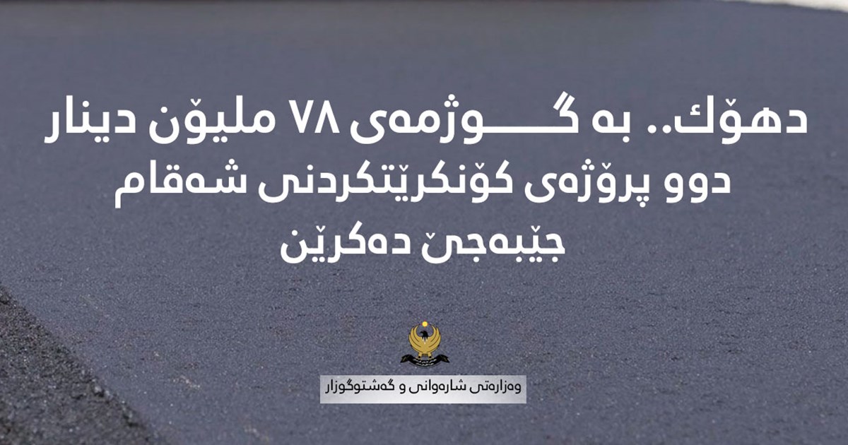 بە گوژمەی ٧٨ ملیۆن دینار دوو پرۆژەی كۆنكرێتكردنی شەقام لە شاری دهۆك جێبەجێ دەكرێن