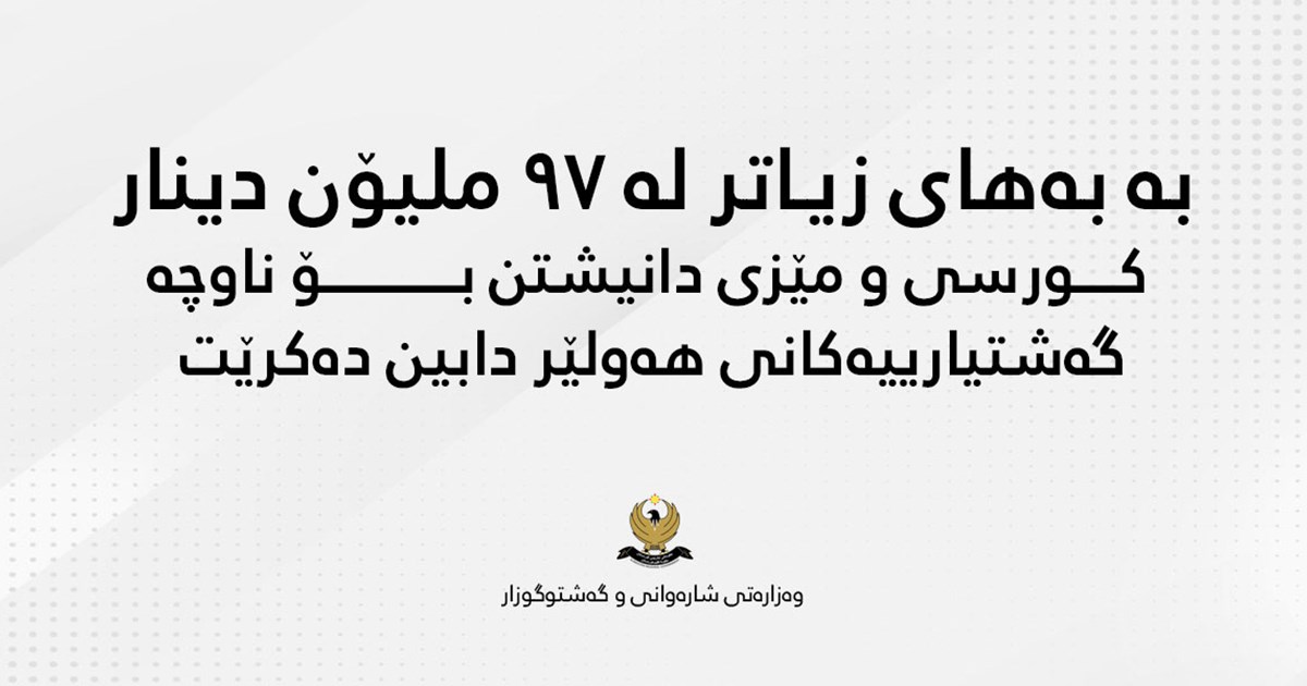 وەزارەتی شارەوانی و گەشتوگوزار بڕیاری خەرجكردنی زیاتر لە ٩٧ ملیۆن دیناری بۆ دابینكردنی كورسی و مێزی دانیشتن بۆ ناوچە گەشتیارییەكانی سنووری هەولێر دا.