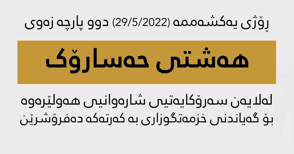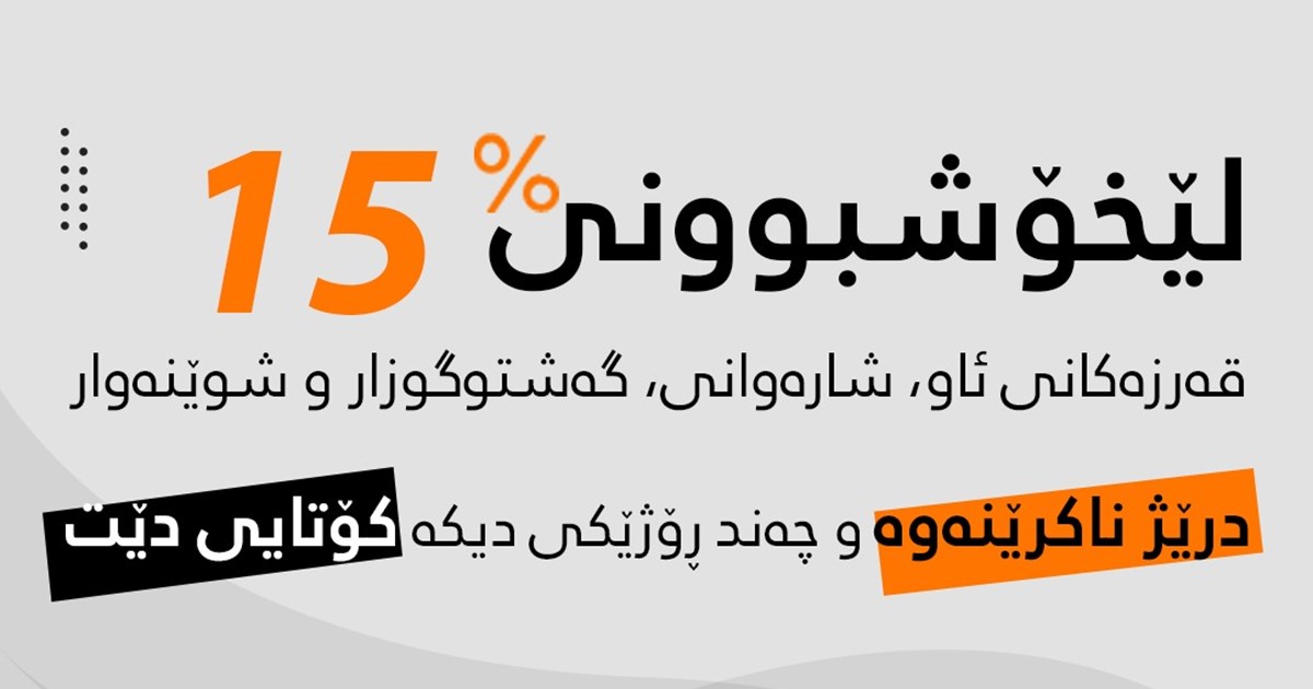 دوا وادە بۆ لێخۆشبوونی ڕێژەی ١٥٪ی قەرزەكانی ئاو، گەشتوگوزار، شارەوانی، شوێنەوار كە لەلای هاووڵاتییانە تاوەكو ٦/٦/٢٠٢٢ دیاریكراوە و لەم ڕێكەوتە بەدواوە درێژ ناكرێتەوە.
