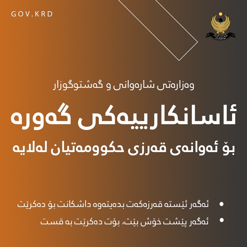 بە گوێرەی نووسراوێكی وەزارەتی شارەوانی و گەشتوگوزار كە واژووی ساسان عەونی وەزیری شارەوانی و گەشتوگوزاری بەسەرەوەیە و ئاراستەی دامودەزگاكانی سەر بە وەزارەت لە سەرجەم شار و شارۆچكە و ئیدارە سەربەخۆكانی هەرێمی كوردستان كراوە، ئاماژە بەوە دراوە كە لەبەر بەرژوەندیی گشتی و بەرژەوەندیی هاووڵاتییان بەمەبەستی بارسووككردنیان لە دانەوەی قەرزەكانیان بڕیارمانداوە بە قیستكردنی قەرزەكانی حكومەت.