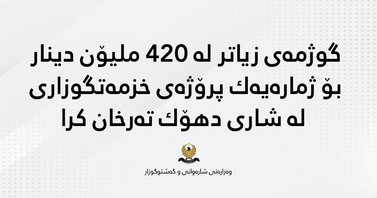 هەولێر، هەرێمی کوردستان (GOV.KRD)-بە مەبەستی پەرەپێدانی پڕۆژەی جۆراوجۆری خزمەتگوزاری لە شاری دهۆك، لە چەند فەرمانێكی جیاوازدا بە واژووی ساسان عەونی، وەزیری شارەوانی و گەشتوگوزار، بڕیاری خەرجكردنی گوژمەی زیاتر لە ٤٢٠ ملیۆن دینار بۆ جێبەجێكردنی ژمارەیەك پرۆژە لە سێكتەرەكانی شارەوانی و ئاو لە سنووری سەرۆكایەتیی شارەوانیی دهۆك درا.
