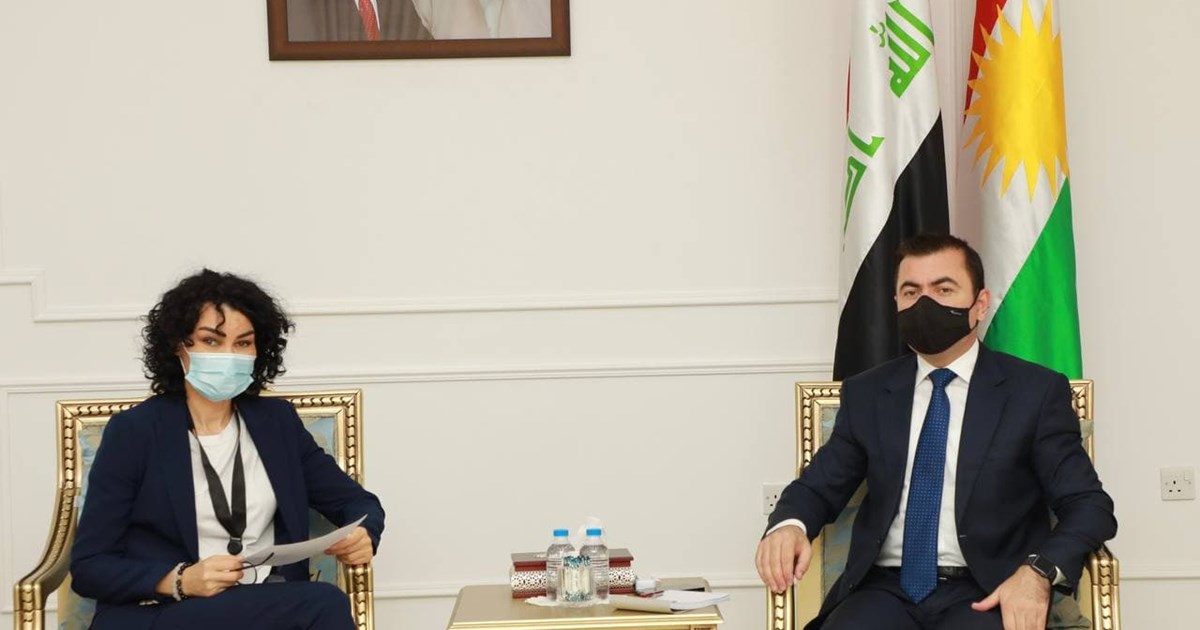 هەولێر، هەرێمی کوردستان، عێراق (GOV.KRD)- ڕۆژی یهكشهمه 1-8-2021 لهدیوانى وهزارهت د.دارا ڕهشید وهزیرى پلاندانان پێشوازیكرد له دكتۆره (Rita columbia ) نوێنەری سندووقی نەتەوە یەکگرتووەکان بۆ دانیشتووان لە عێراق و وەفدێکی یاوەری.